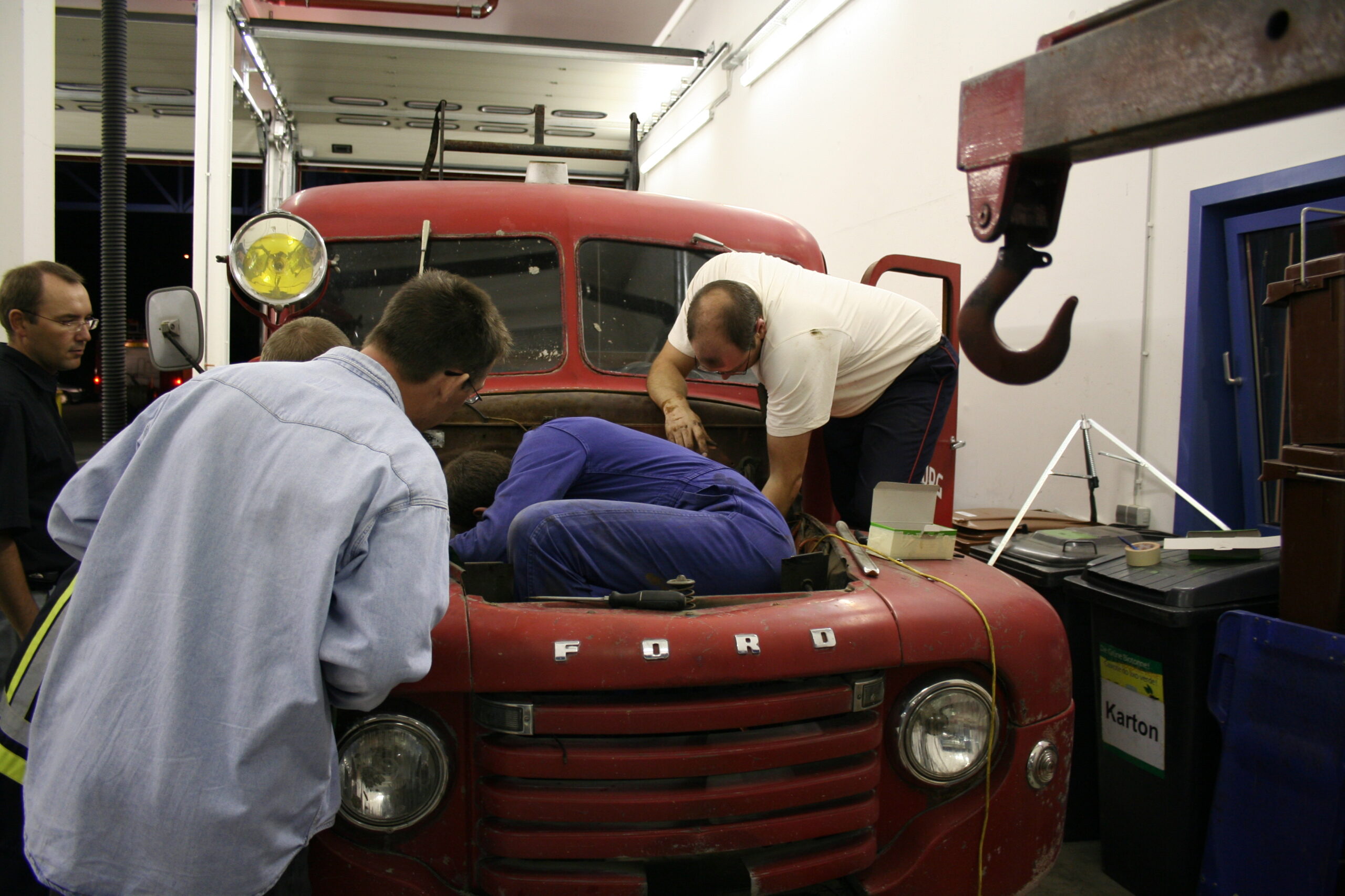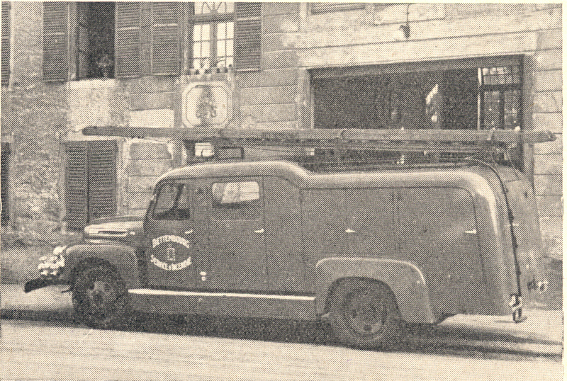 D'Auto-Motorspritze (LF - Läschwon) baséiert op engem amerikanesche Ford F5 Chassis an huet e Lëtzebuerger Opbau (Pläng vum Bureau Adrien Faber - Opbau Carrosserie Edinger - Fonderie de Mersch (Pompel) - Emaillage Maroldt vu Beetebuerg).